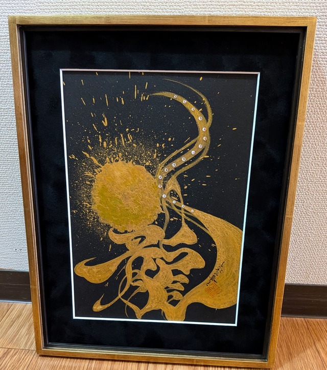 心に響く神秘の存在 「龍 Gorgon」art 2025年 ニューヨーク出展作品 「龍 Gorgon」は、古代の伝説にインスパイアされた力強い作品です。この作品は、龍の神秘的な魅力と威厳を金墨で表現しており、見る者を引き込む力があります。龍は、力と知恵の象徴であり、その存在は古くから人々の心を捉えてきました。このアート作品には、スワロフスキーが装飾され厳かな美しさと共に、昇龍のインスピレーションをもたらしてくれることでしょう。笑顔開運書画で、人生謳歌へ導きます。 ■原画 ・サイズ A4 ・素材 墨金 装飾スワロフスキー ・額 ゴールド系 ・天板 アクリル板 ■ 製造国 ・製造国: 日本 ■ 発送 ・発送はご注文から2週間以内に行います。 ■ その他の情報や注意事項 ・商品の特性上、返品はお受けできませんのでご了承ください。 ・ご不明な点があれば、お気軽にお問い合わせください。 お問合せはショップのお問い合わせからお願い申し上げます。