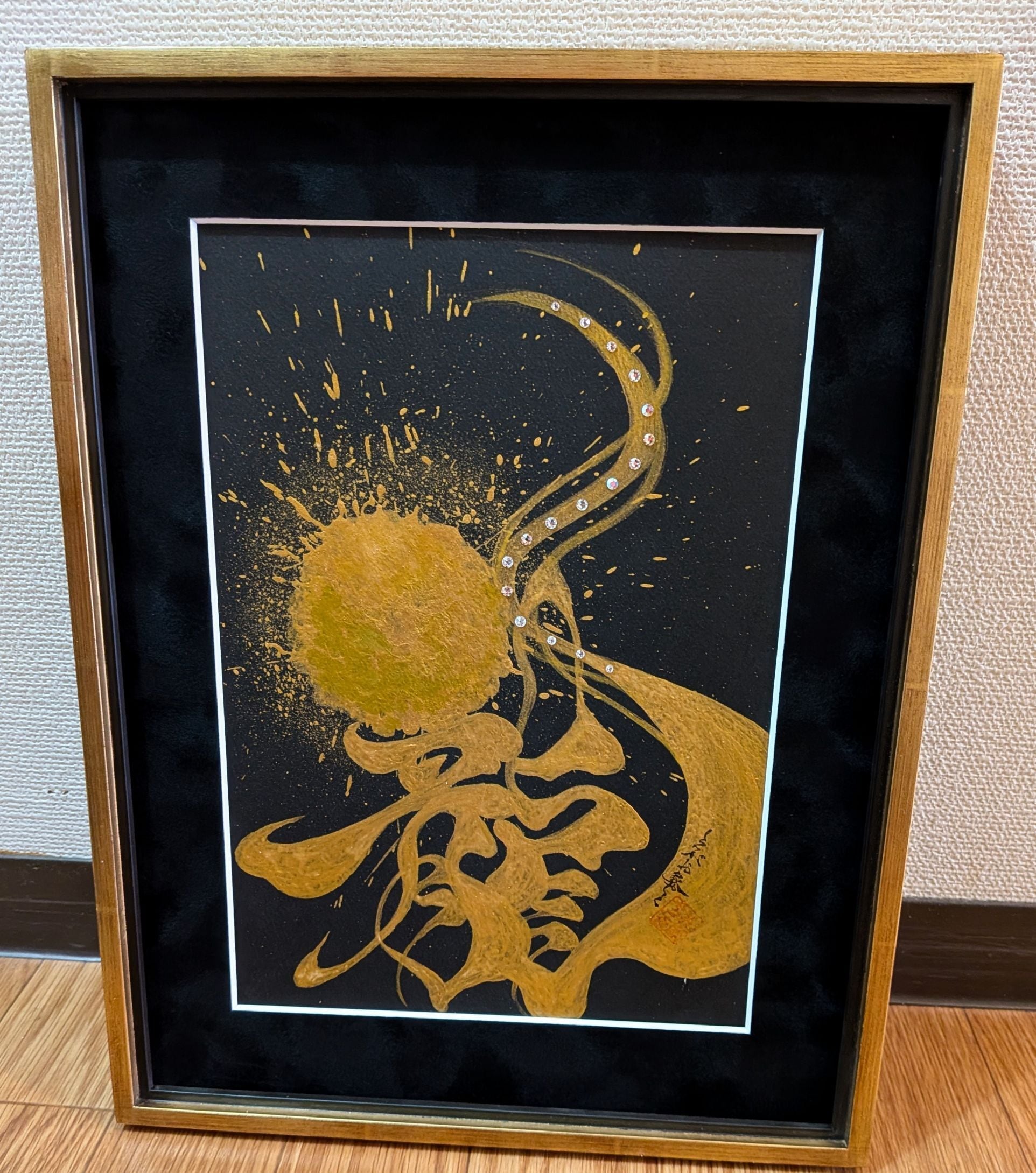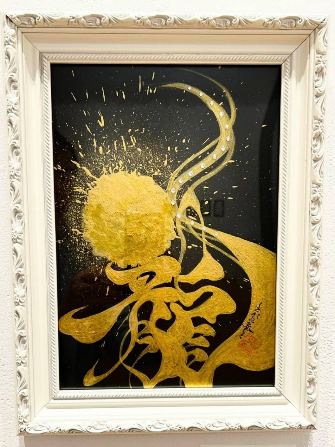 「龍 Gorgon」は、古代の伝説にインスパイアされた力強い作品です。この作品は、龍の神秘的な魅力と威厳を金墨で表現しており、見る者を引き込む力があります。龍は、力と知恵の象徴であり、その存在は古くから人々の心を捉えてきました。このアート作品には、スワロフスキーが装飾され厳かな美しさと共に、昇龍のインスピレーションをもたらしてくれることでしょう。笑顔開運書画で、人生謳歌へ導きます。